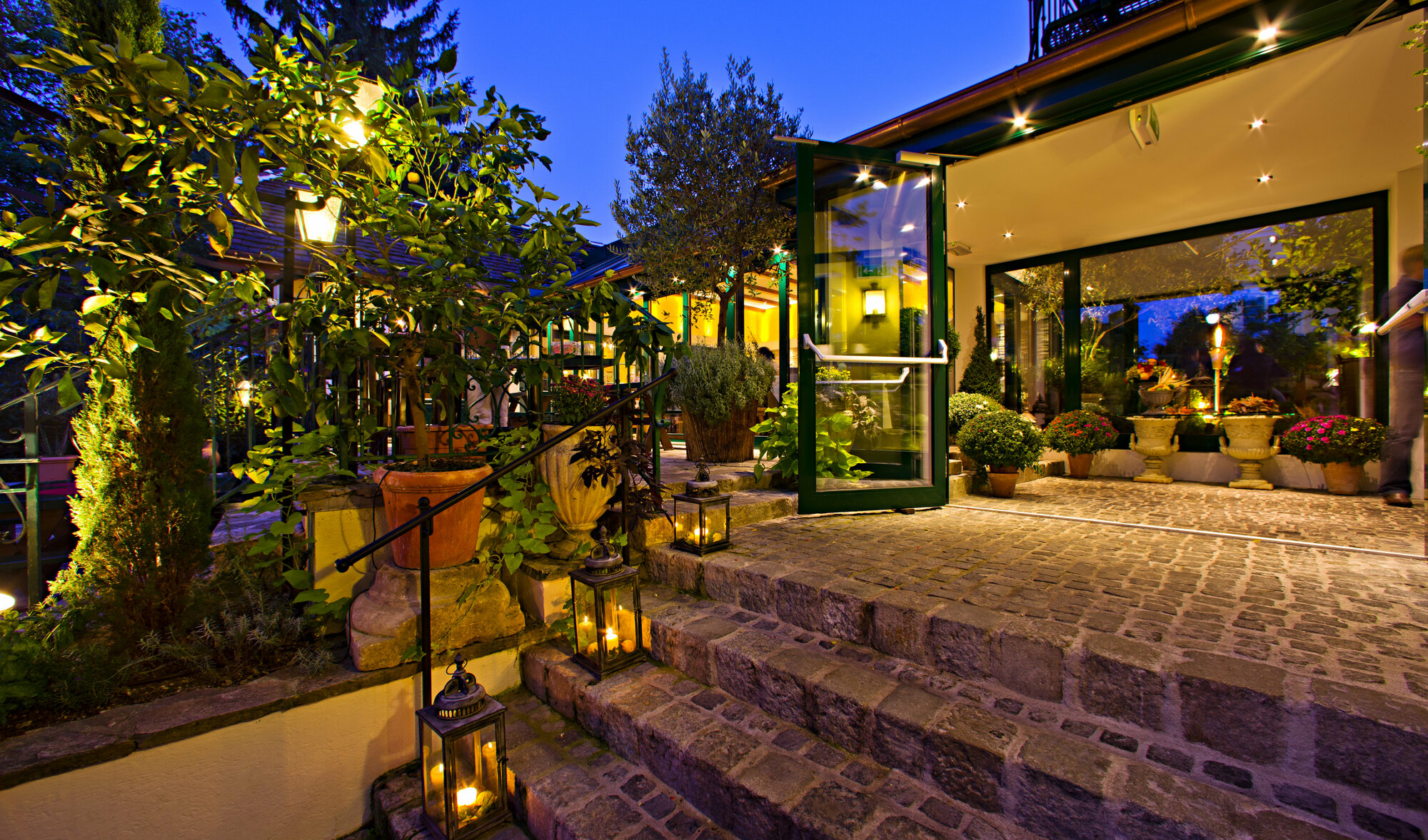 Das elegante Salettl wird besonders gerne für geschlossene Veranstaltungen wie Familienfeste und Firmenfeiern gebucht. Sollte die Gästeliste größer ausfallen, eröffnet der Glas-Pavillon gleich nebenan zusätzlichen Platz. Beide Räume sind mit einander durch große Türen verbunden, haben aber separate Eingänge und bieten gemeinsam viel Raum für Ihr Fest. Die Terrasse im Eingangsbereich eignet sich perfekt für Agape, Aperitif & Co.