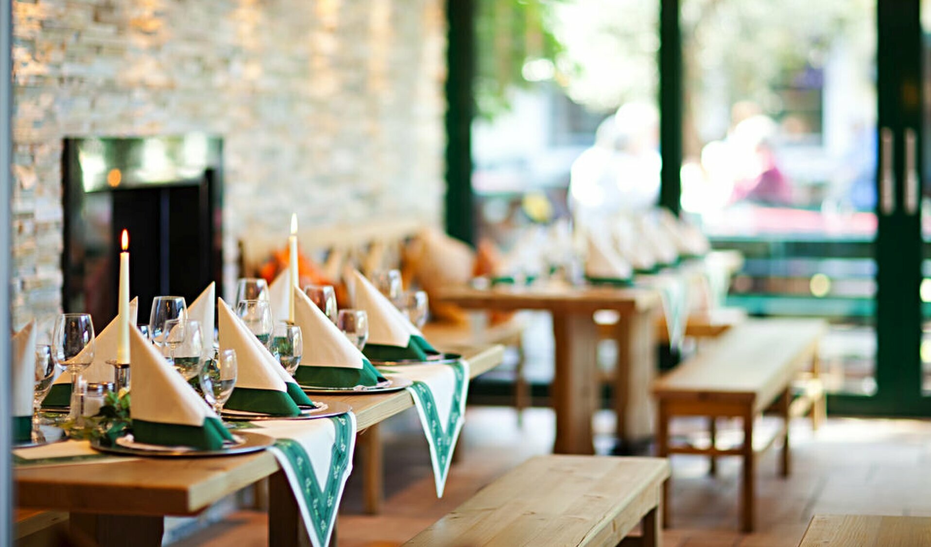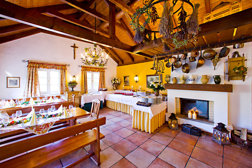 Die Scheune wie auch Stube & Veranda sind im gemütlich-traditionellen Heurigenstil eingerichtet. Besonders angenehm: mit nur wenigen Schritten ist man von hier bequem direkt am Buffet oder zum Frischluft-Schnappen im Garten.